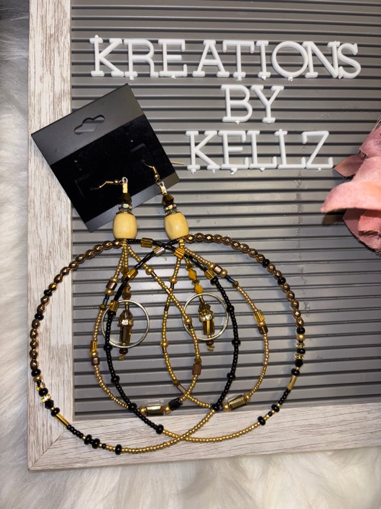 These lovely beaded large hoop earrings are handmade and ONE OF A KIND each pair made are different. You’ll be screaming “Wildfire!” when you set your eyes on these unique attention-grabbers. Beautiful light weight earrings that can be worn casual or are elegant enough to dress up evening wear!