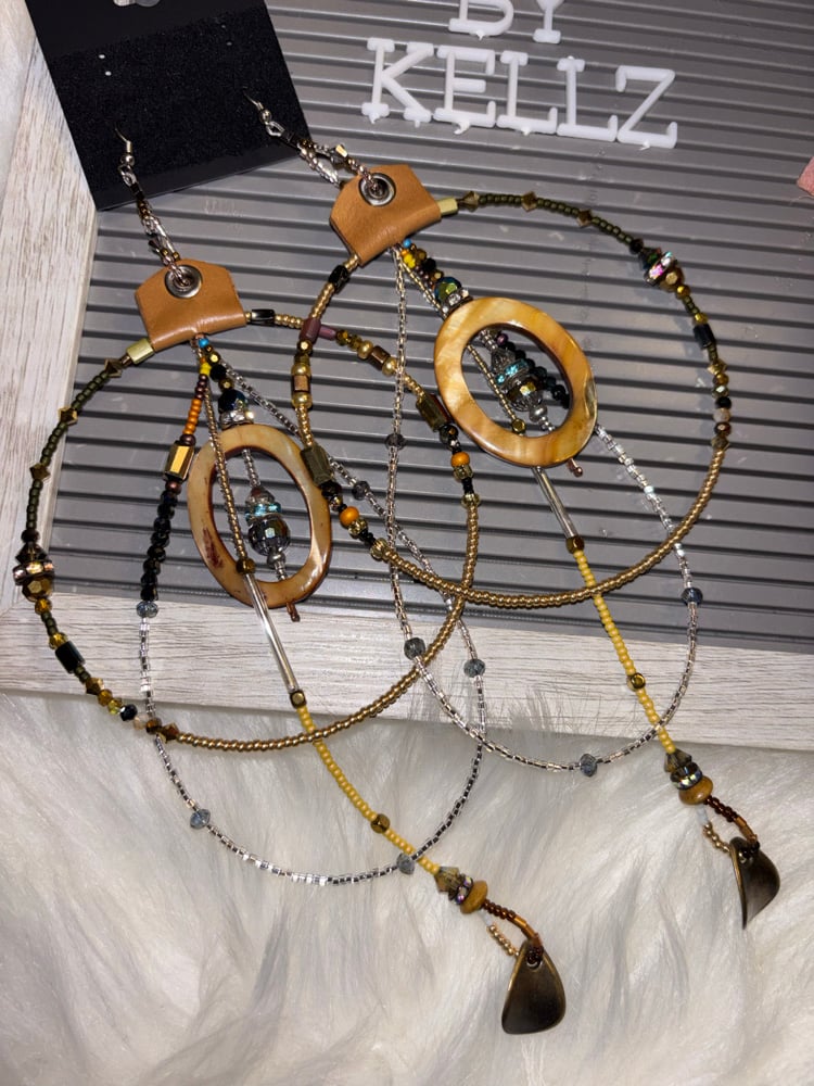 These lovely beaded large hoop earrings are handmade and ONE OF A KIND each pair made is different.