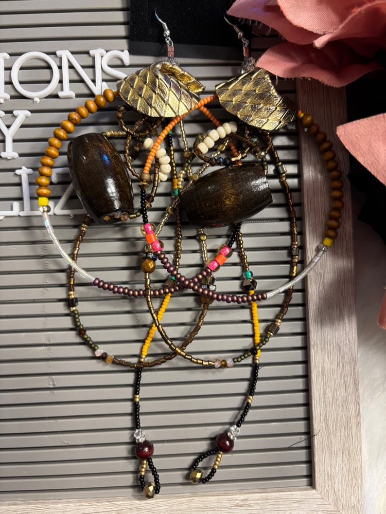 These lovely large hoop beaded earrings are handmade and ONE OF A KIND each pair made is different. You'll be screaming "Wildfire!" when you set your eyes on these unique attention-grabbers. Beautiful light weight earrings that can be worn casual or are elegant enough to dress up evening wear! 💯% genuine leather.