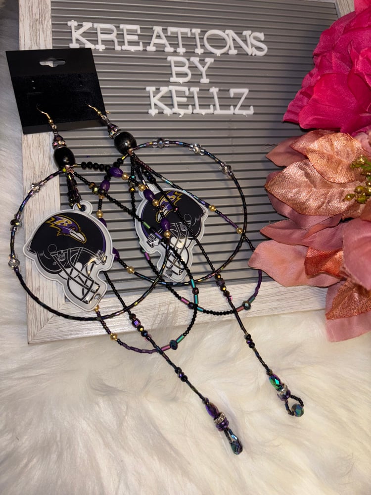 Show off your Ravens pride with these stunning handmade beaded hoop earrings—each pair is truly one of a kind! You’ll be shouting “Wildfire!” when you see these bold, attention-grabbing accessories. Lightweight and versatile, they’re perfect for everyday casual wear or adding a touch of team spirit to your evening look. Celebrate your Baltimore Ravens fandom with these unique, handcrafted earrings—wear them loud, proud, and stylish!