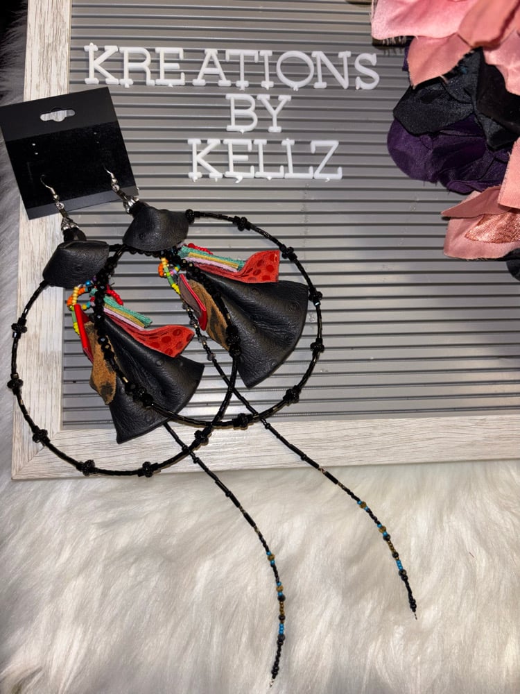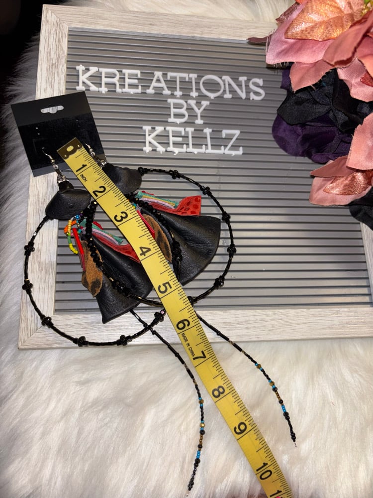 These lovely beaded large hoop earrings are handmade and ONE OF A KIND each pair made are different. You’ll be screaming “Wildfire!” when you set your eyes on these unique attention-grabbers. Beautiful light weight earrings that can be worn casual or are elegant enough to dress up evening wear! 💯% genuine leather.