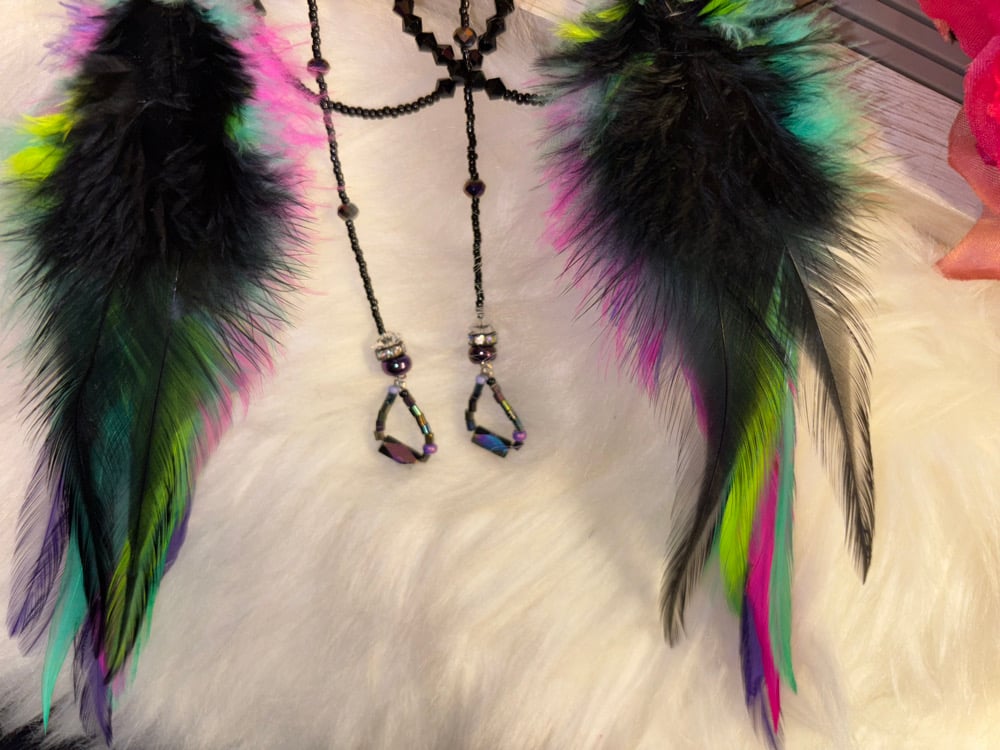 These lovely beaded large hoop earrings are handmade and ONE OF A KIND each pair made are different. You’ll be screaming “Wildfire!” when you set your eyes on these unique attention-grabbers. Beautiful light weight earrings that can be worn casual or are elegant enough to dress up evening wear!