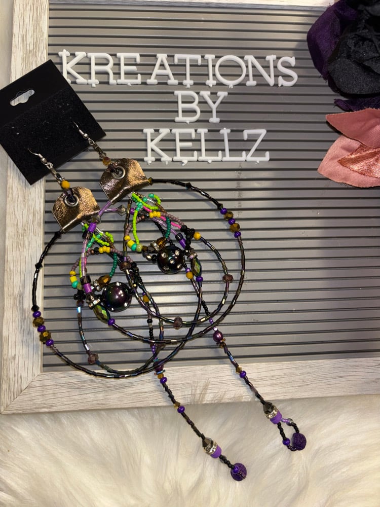 These lovely beaded large hoop earrings are handmade and ONE OF A KIND each pair made is different.